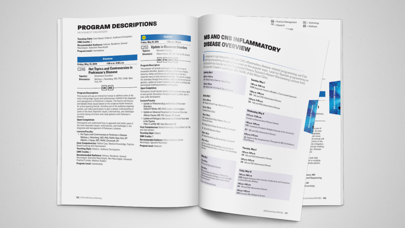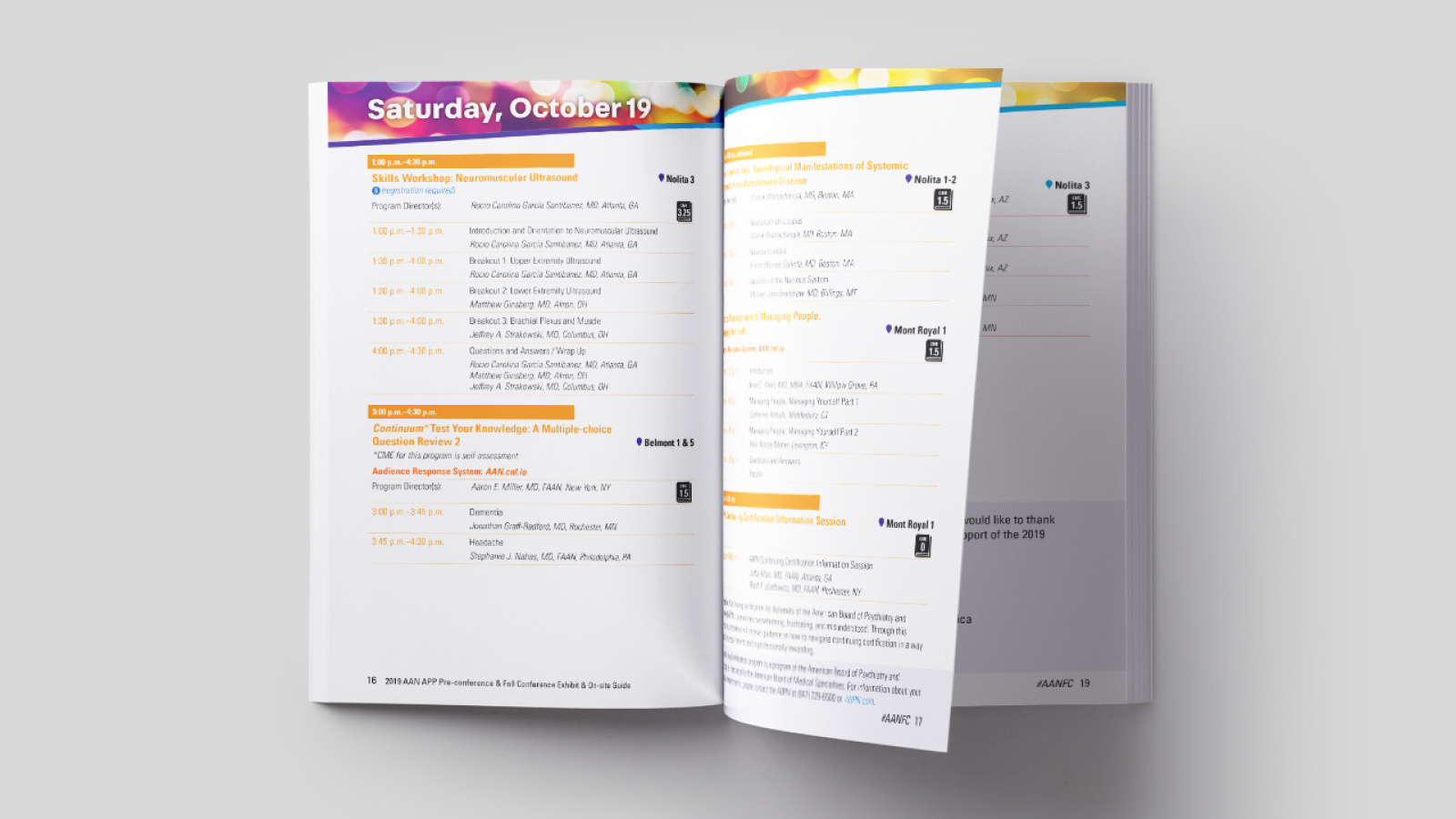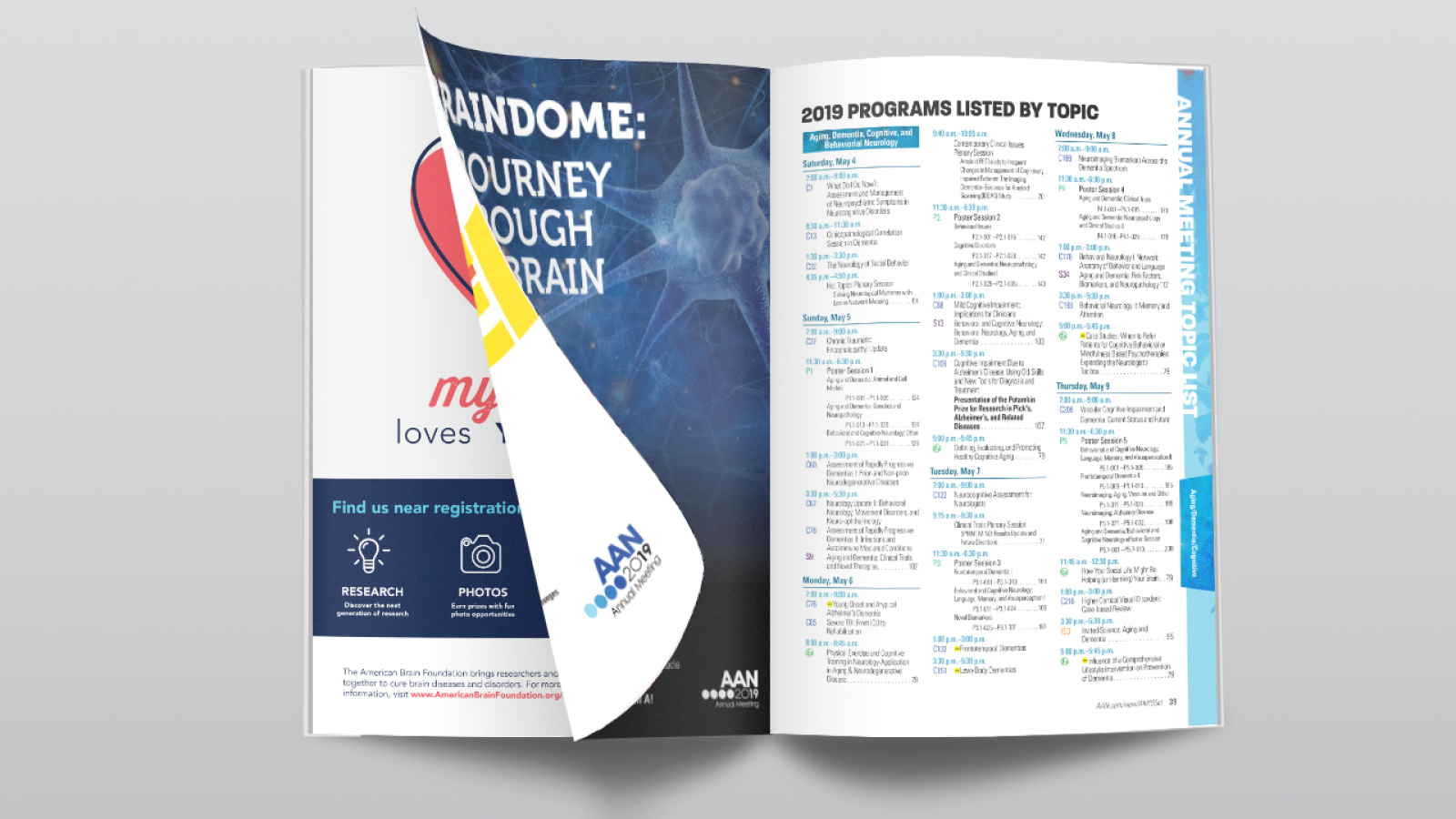 In early 2019, AAN reached out to PUREi to discuss options and solutions to take the design of their Annual Meeting publications out of house. After reviewing their various catalogs, PUREi determined that they would be a great candidate for database-design merge methodology which would not only streamline the design & production, but also save AAN significant amounts of money on these projects.