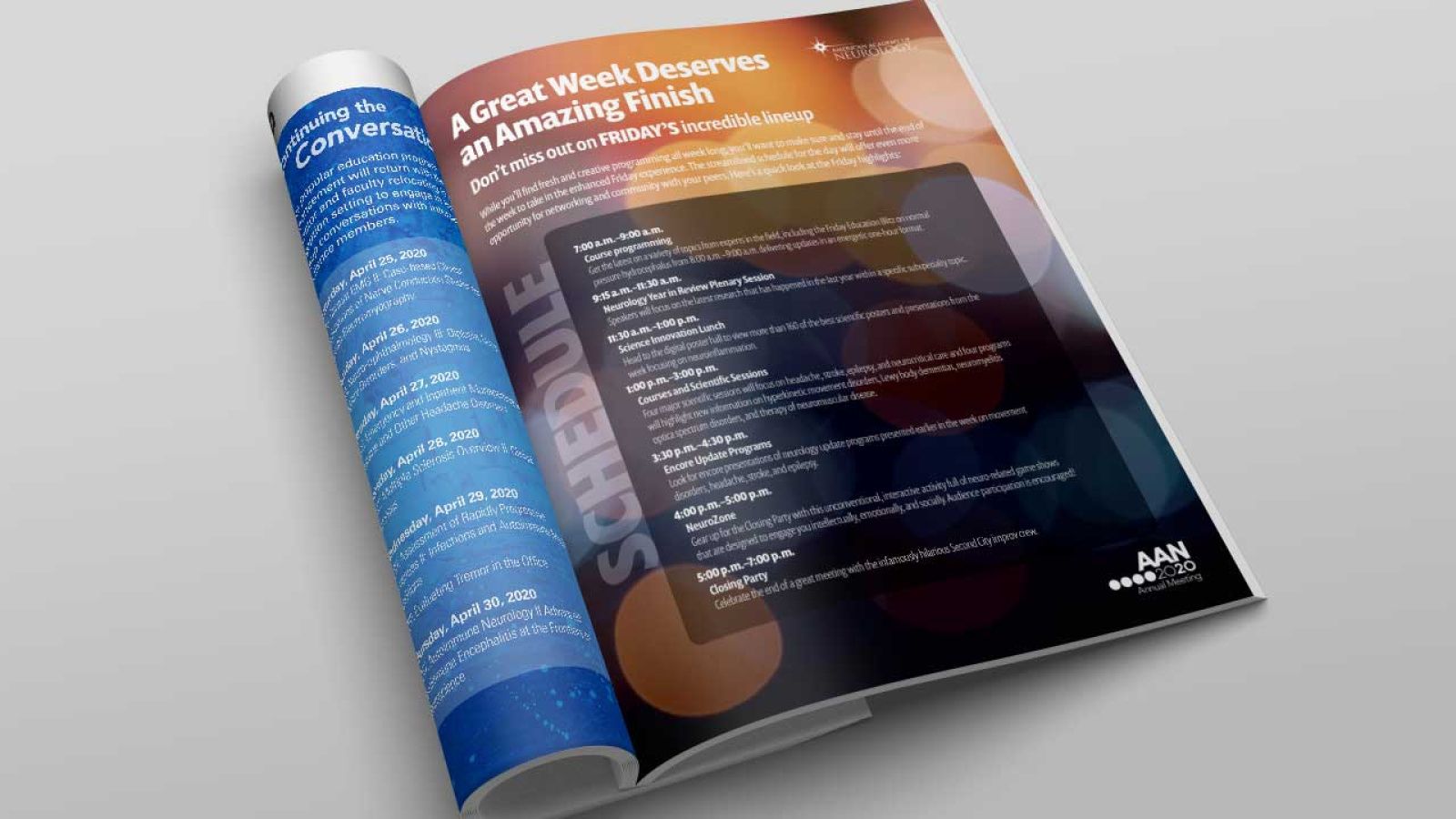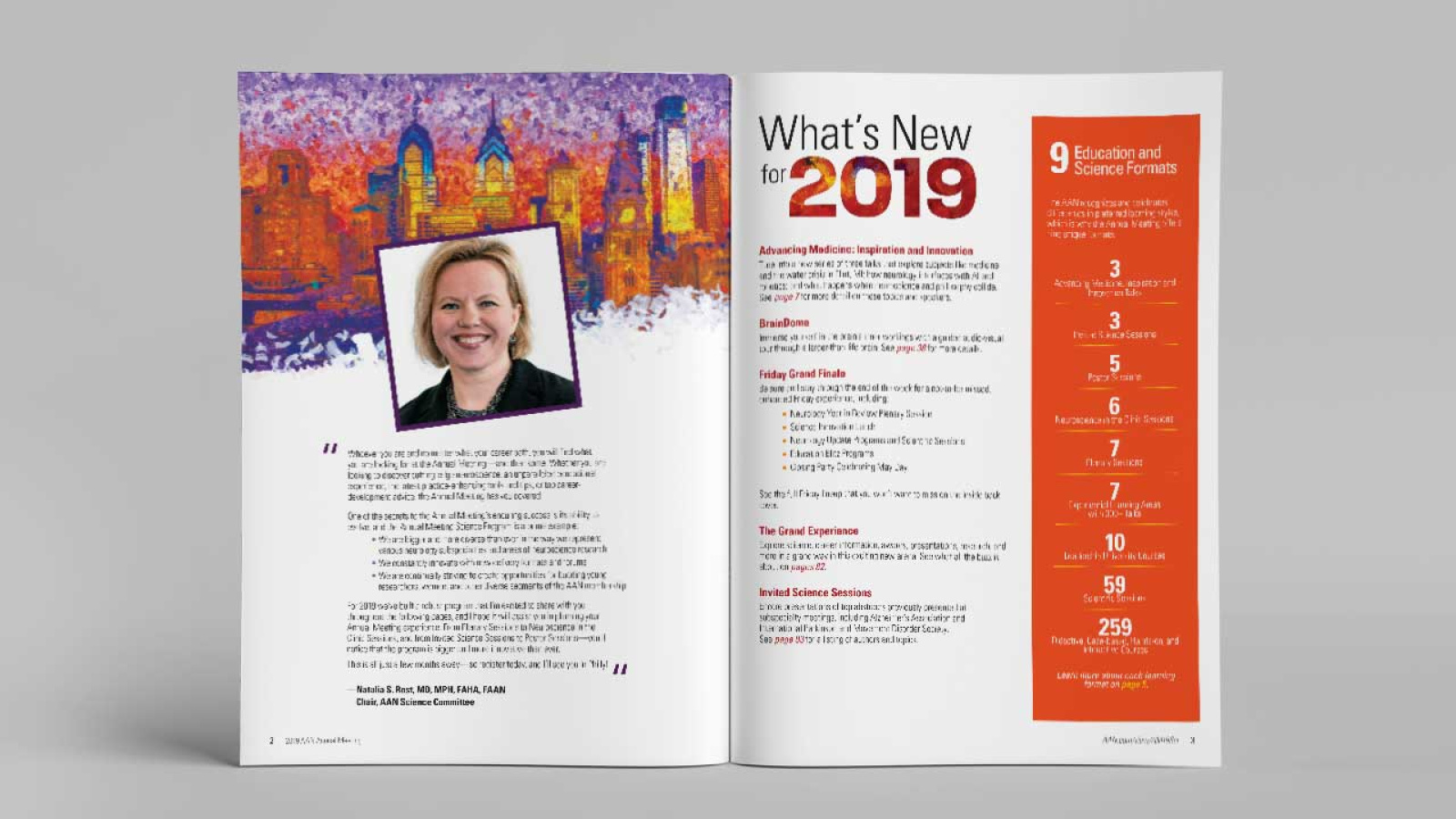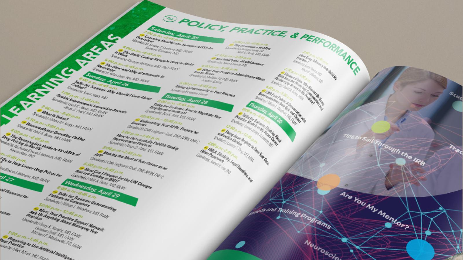 In early 2019, AAN reached out to PUREi to discuss options and solutions to take the design of their Annual Meeting publications out of house. After reviewing their various catalogs, PUREi determined that they would be a great candidate for database-design merge methodology which would not only streamline the design & production, but also save AAN significant amounts of money on these projects.